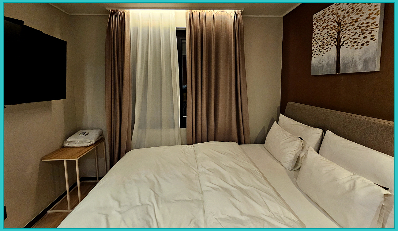 시내에 있다 보니 식사가 용이하고 아침 조식으로 간단한 브레드를 무료로 이용할 수 있어 가성비가 으뜸인 것이 장점인 호텔이며 단체로 4명이 함께 머무를 수 있는 객실이 갖춰져 있다.